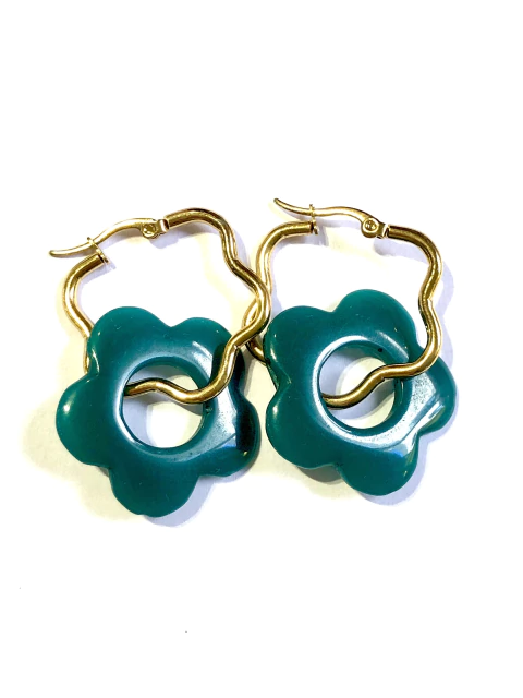 Argollitas de acero quirúrgico + dije flor de resina. Esta pieza puede poner y sacarse según el uso.