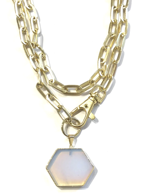 Collar cadena regulable con cierre central y dije en forma hexágono de piedra de piedra de la luna pulida