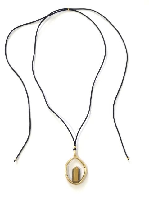 Collar tipo choker con cordón finito en seda y sistema regulable + dije de aro con incrustación en piedra natural.