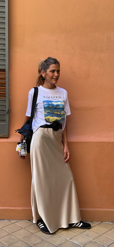 Pollera de seda cortada al bies, de hermosa caida y muy sentadora, tendencia full junto con las polleras estilo boho, pero este estilo propone un look bien femenino, y nos invita a jugar con las mezclas de estilos para lograr un lookazo mezclandolo con remeras de algodon y buzos, pero tambien estar elegantes y estilazadas si la llevamos a una fiesta!